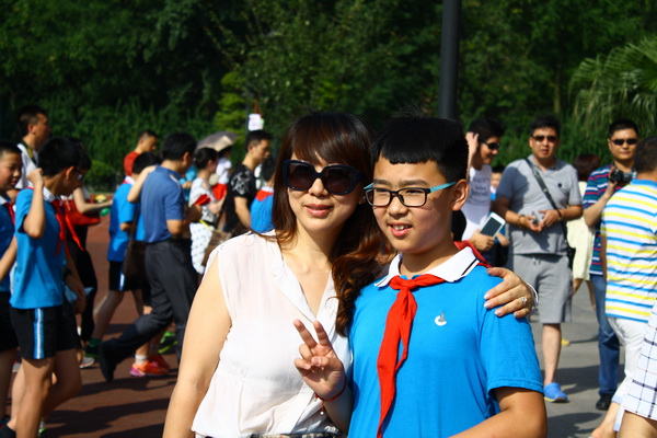 和妈妈在母校留个影