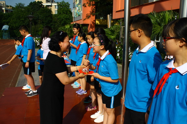 弥校长为金牛区“三好学生”颁奖并向各班级代表颁发毕业证