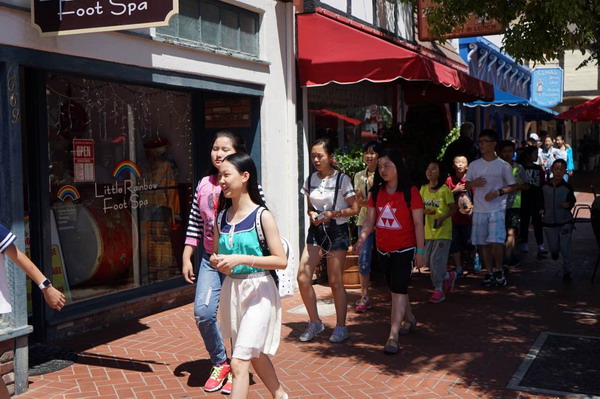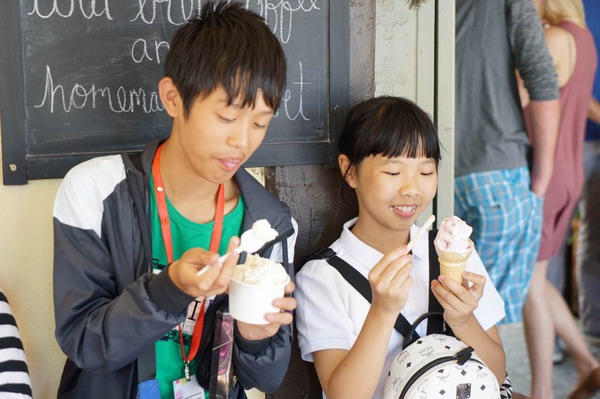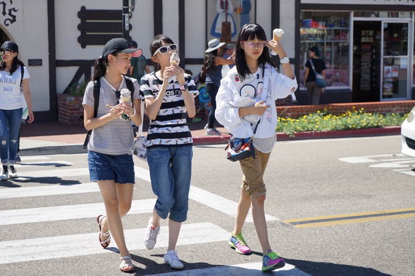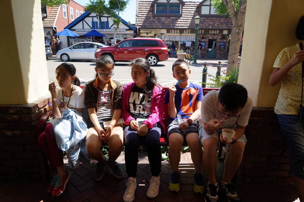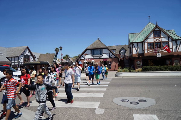 7月5日,赴美游学团一大早便离开了风景宜人的优胜美地国家公园,乘坐巴士前往享有“天使之城”美誉的洛杉矶。途中,我们游览了具有欧式风情的景点——丹麦城。丹麦城的英文名称叫做Solvang。而Solvang在丹麦语中的意思是“沐浴在阳光下的田野”。孩子们在老师的带领下,轻松愉悦地畅游丹麦城。那里全欧式的建筑设施、做工精细的小工艺品深深地吸引着孩子们的目光。值得一提的是,丹麦城内正宗美味的冰淇淋,种类应有尽有,任你挑选。手捧一杯冰淇淋,信步在丹麦城内,长途旅行中的疲劳顷刻全无……!