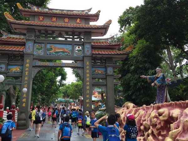 新加坡不愧是花园城市,一路上,路两边树木茂密,偶尔有簇簇花儿,好像一直是在公园里。在车上,不仅看到鸟儿,还能看到松鼠。它们一点也不怕人哦。不过我们不能追它们,更不能逮它们。因为新加坡很保护它们,有法律规定不能伤害,若伤害动物,会判刑的。我们也就远远的看看他们。