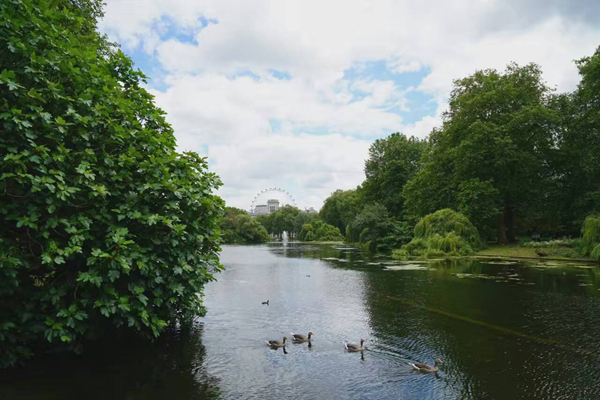 穿过骑兵营广场,就来到美丽的摄政王公园——詹姆斯公园——鸽子、鸭子、天鹅⋯⋯旁若无人的飞、游、走,让人深深地感受到英国这个国度的友好。