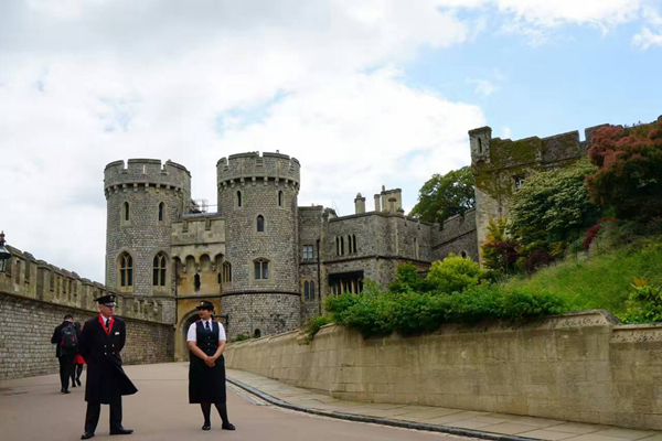 温莎城堡。温莎城堡(Windsor Castle),位于英国英格兰东南部区域伯克郡温莎-梅登黑德皇家自治市镇温莎,目前是英国王室温莎王朝的家族城堡,也是现今世界上有人居住的城堡中最大的一个。城堡的地板面积大约有45,000平方米(相当于268个网球场)。与伦敦的白金汉宫、爱丁堡的荷里路德宫(Holyrood Palace)一样,温莎城堡也是英国君主主要的行政官邸。现任的英国女王伊丽莎白二世每年有相当多的时间在温莎城堡度过,在这里进行国家或是私人的娱乐活动。今天王室有活动,所以国厅没有开放。
