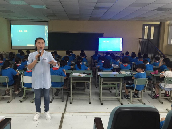 9月12日,我校五年级开展德育教育专项培训。五年级的同学来到新的校区,对新校区的日常行为规范还不了解,德育处朱珊珊老师向同学们介绍了中海校区的校园特点,并讲解了中海校区的学生行为准则。怎样排队?怎么下楼?怎样活动?同学们认真倾听,详细记录要点,不时举手提问!