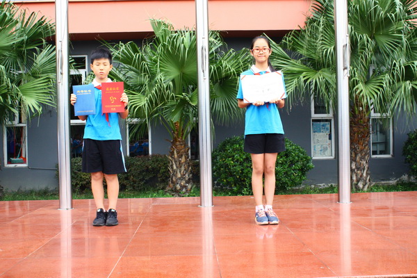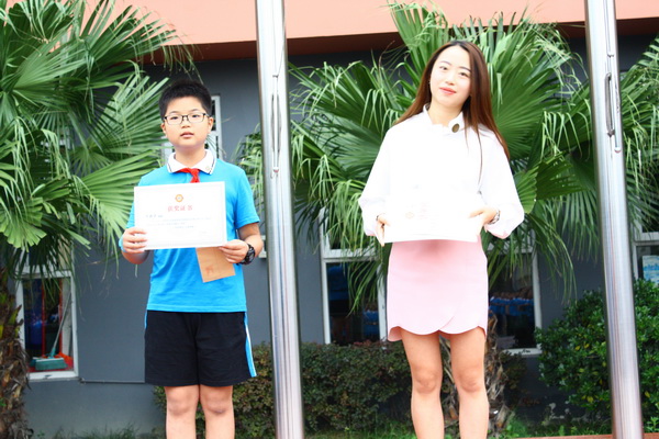 9月12日,我校中海校区举行第三周集体朝会。上学期,我校五六年级的同学参加了全国和平海报征集活动,这是由国际公益组织狮子会举办的国际性比赛,我校的同学取得了优异成绩。今天,我们为获奖的同学颁奖。我校同学还在暑假中参加了全国第十二届校园才艺大赛并获奖,让我们恭喜他们!