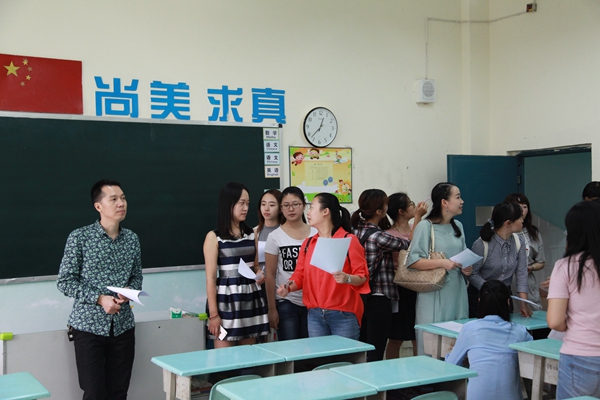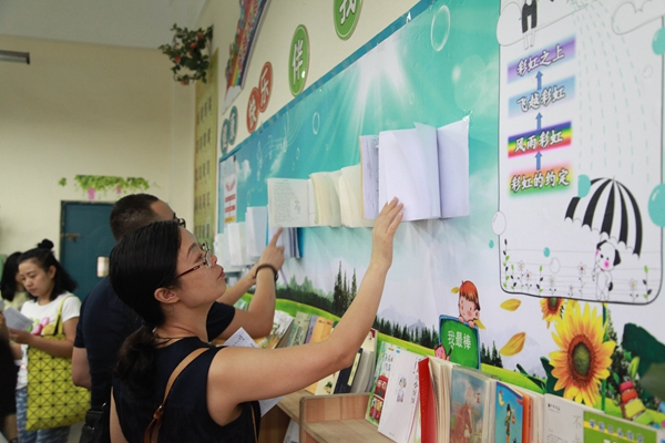 老师们认真参观评选美丽教室