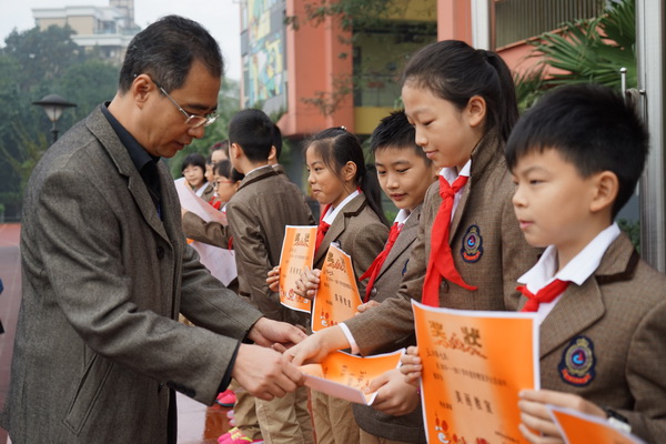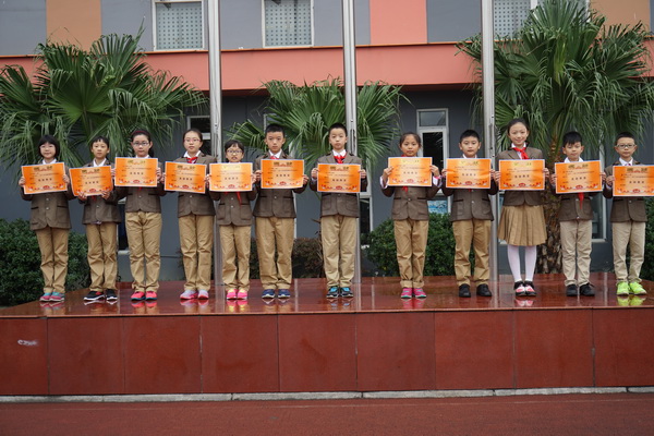 10月17日,我校中海校区举行第八周集体朝会。今天,我校新一届的大队委预备委员与同学们见面,并发表演讲为自己拉票。本周,预备委员的会将自己的宣传展板摆放出来供同学们参阅、监督。随后,我校领导为在“美丽教室评选活动”和在“全国第十四届少儿美术杯年度艺术展评”比赛中获奖的班级和个人颁奖!