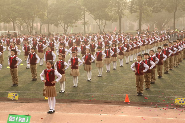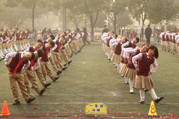 开幕式之后是团体操的表演,四年级的同学们为大家带来了广播体操(七彩阳光)的表演,三年级和一年级的同学带来了团体操的表演。虽然只排练了短短两周,但同学们整齐划一的动作,配合着音乐的节拍,让人耳目一新。四年级五班的同学更为大家带来了自己的小马,并为大家表演了基本的马术!