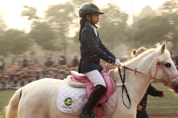 四年级五班的同学为大家带来了马术表演