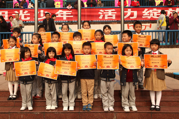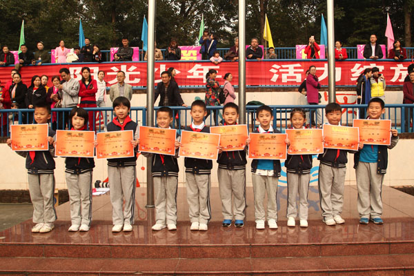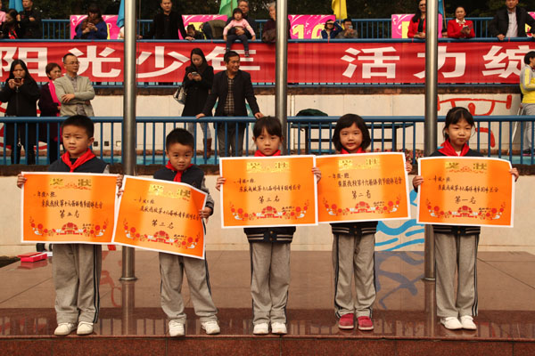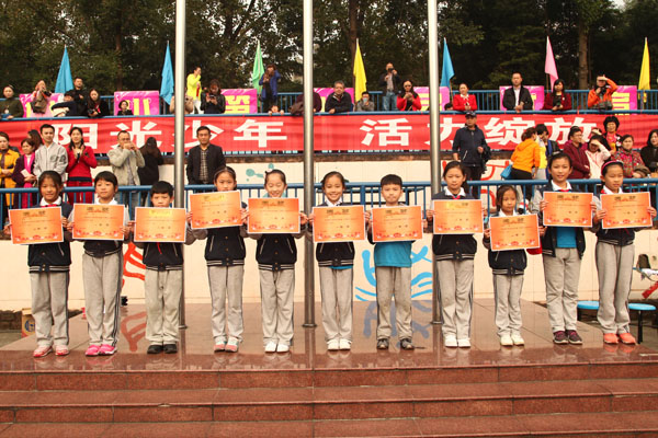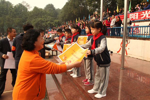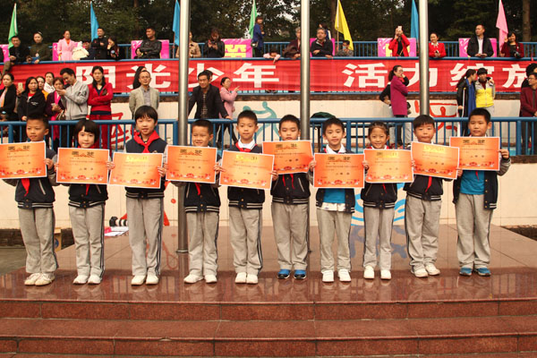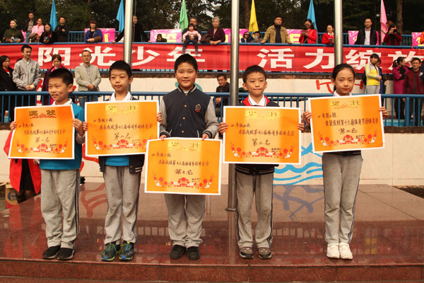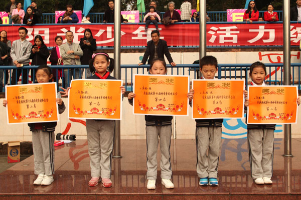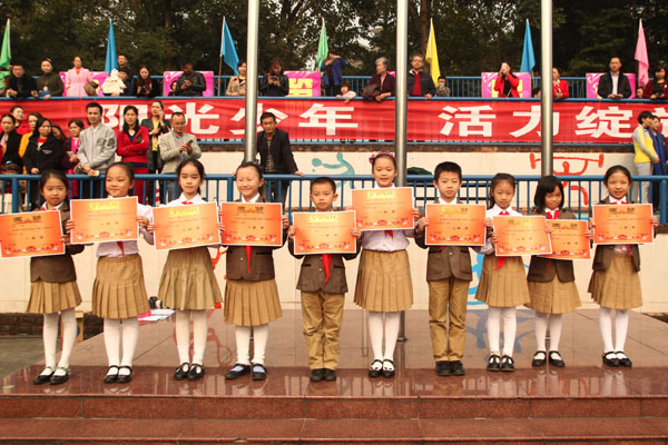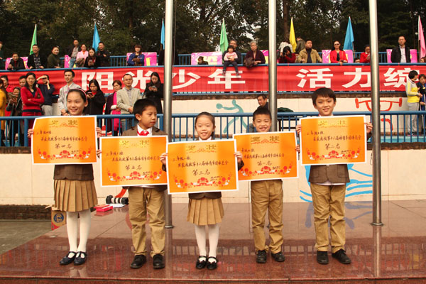 11月4日上午,成外附小第十六届体育节举行了颁奖典礼。为期一天半的体育节渐渐落下帷幕,我们留下了许多欢乐,许多努力,许多感动。在同学和老师们的共同努力下,本届体育节取得了圆满成功!