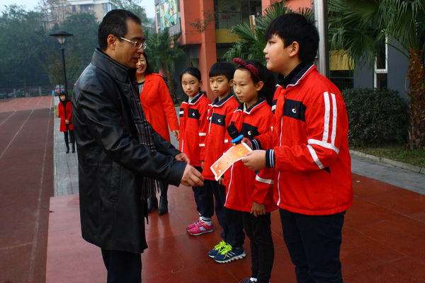岑校长为谢荞泽颁发奖状