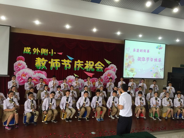经过一年的磨合与排练,孩子们的演奏越来越有默契。在教师节活动上,悠扬的竖笛声中,孩子们迎来了他们的第一次当众表演,大家都非常兴奋!