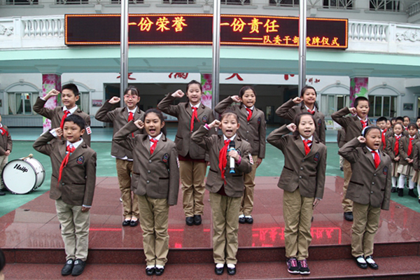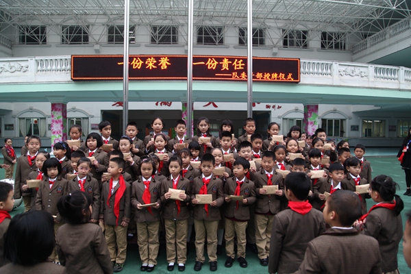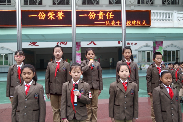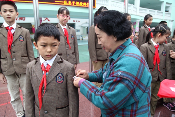 弥校长为大队委授牌