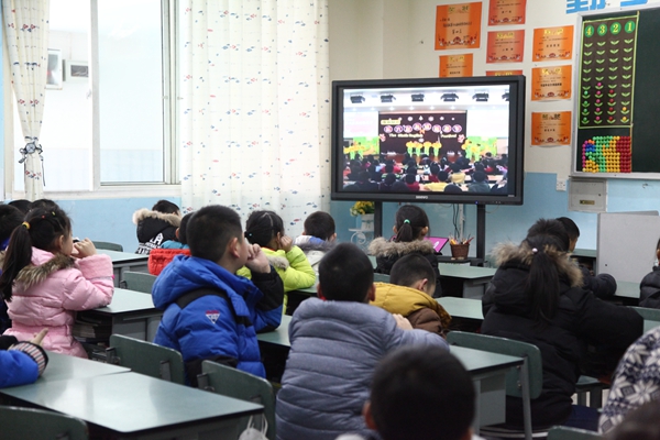 12月22日下午,我校一至三年级举行了圣诞节庆祝活动,孩子们在教室里观看了录制的话剧节表演节目。
