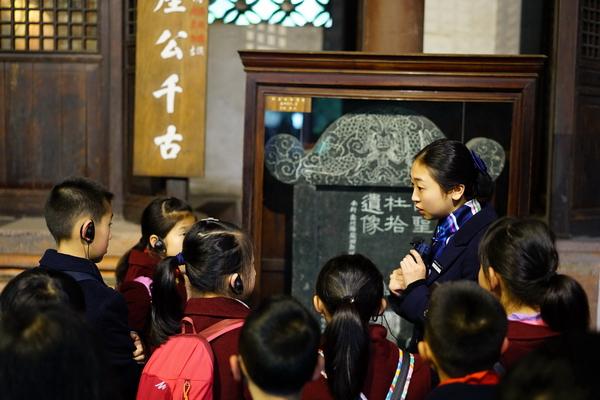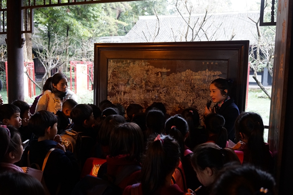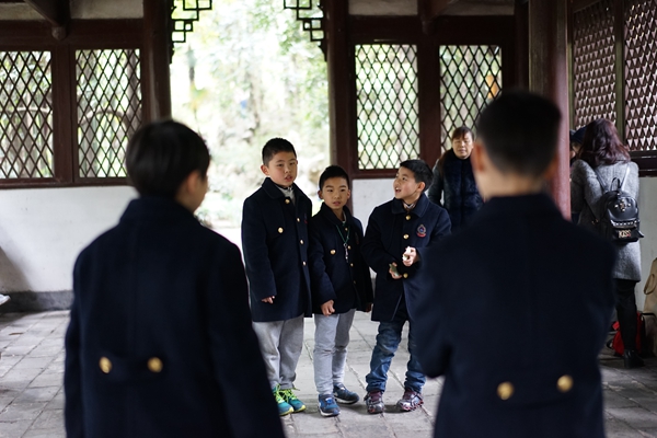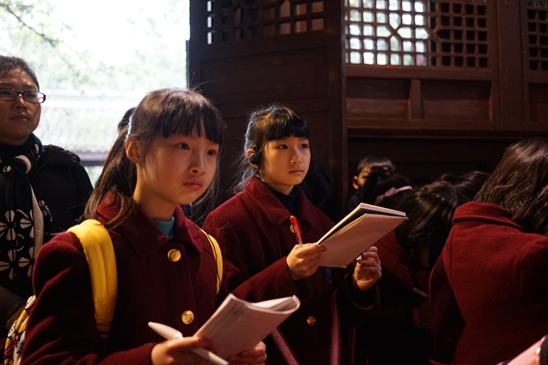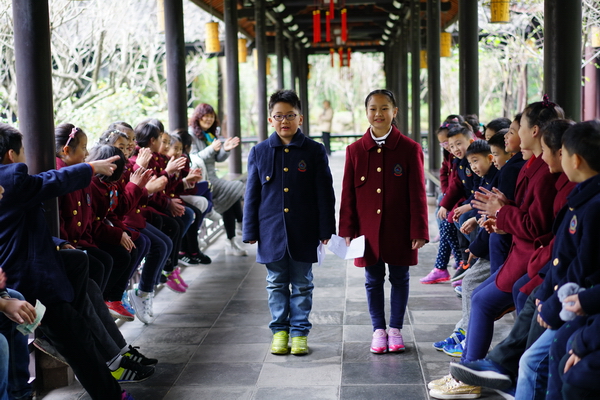 参观结束以后,孩子们在草堂进行了关于杜甫的知识竞答、诗朗诵等活动