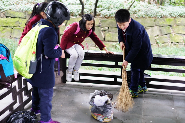 饭后,孩子们在老师的带领下一起打扫清洁,不留下一点垃圾