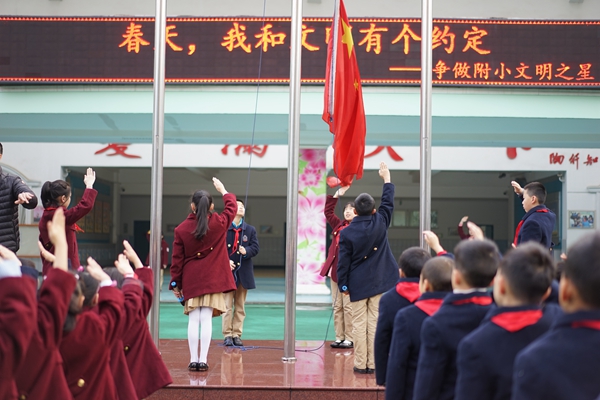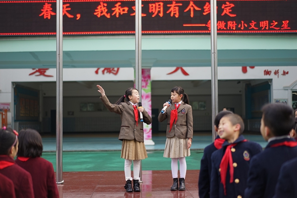 3月20日,我校举行第六周集体朝会,本周集体朝会的主题是《春天,我和文明有个约定》