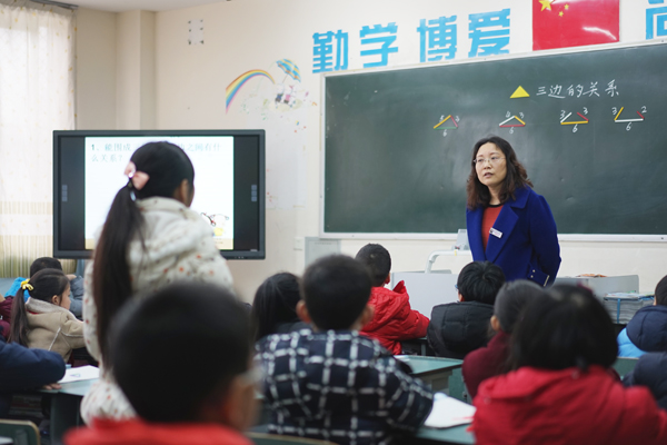 郑老师的课细腻、大方,注重和学生之间的交流,重难点突出,通过独立思考,小组合作等各种方法探索新知,这正是体现把课堂交给学生的教学理念,激发了学生的学习兴趣。最后以“思考题”结束本课,让学生在拓展中运用三角形三边的关系,真正倡导“在乐中学,在乐中悟”。