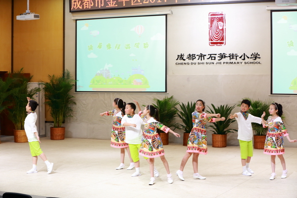 4月26日上午,我校学生的朗诵节目《骑着摩拜游成都》参加了金牛区艺术节的调演。这个朗诵节目构思新颖,从儿童的视角,将传统与现代融合,生动形象地向大家呈现了一个活色生香的成都。孩子们现场表现优异,精彩的朗诵让人意犹未尽。