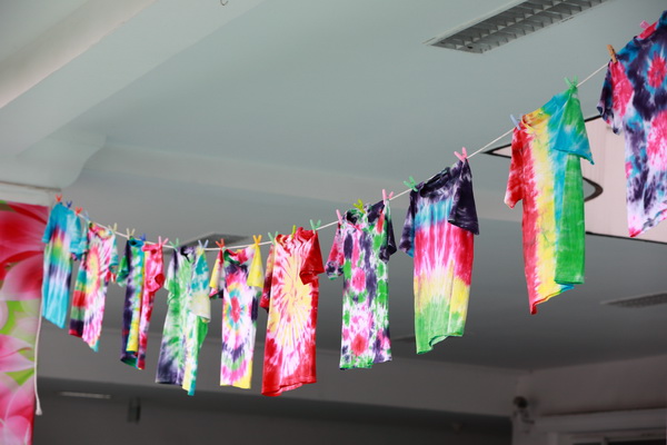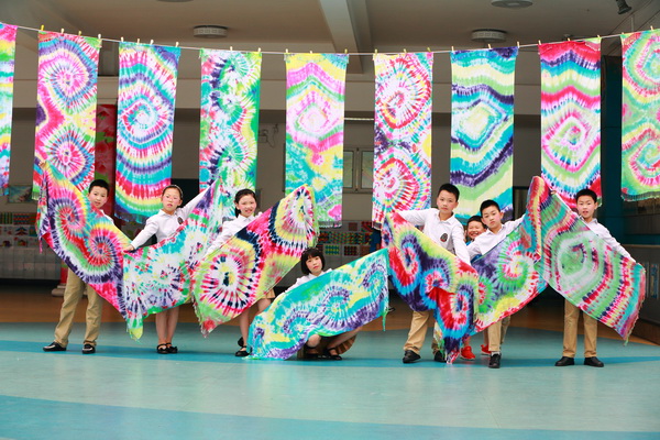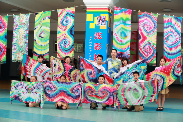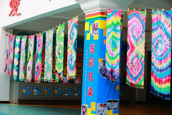 除了丰富多彩的节目表演,由我校美术组组织的“炫彩扎染”也精彩亮相。孩子们在老师们的带领下,创作了精彩纷呈的扎染作品。这些充满情趣的艺术作品,装点了美丽的校园,为节日增添了喜庆的色彩!