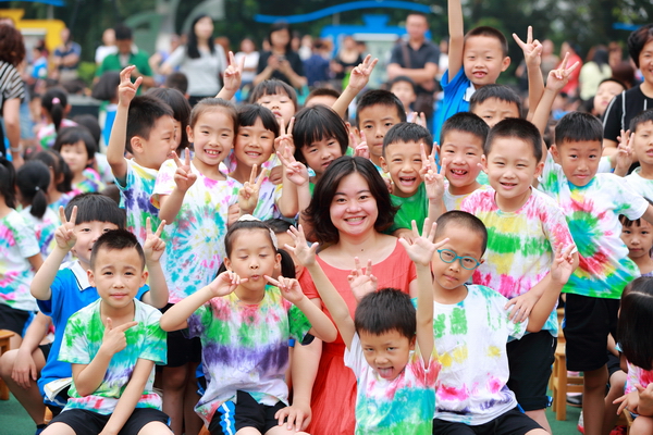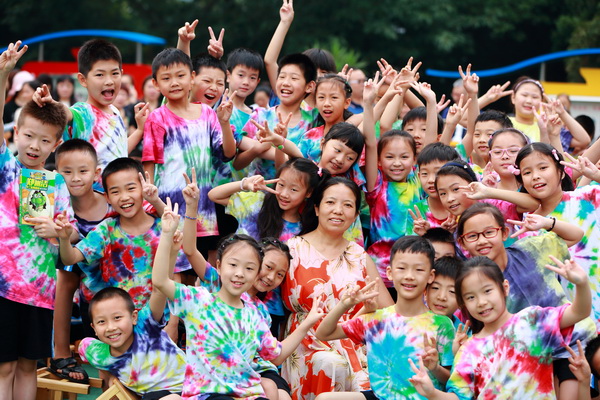 穿上自己染出的衣服,孩子们也成了一朵朵美丽的花儿!