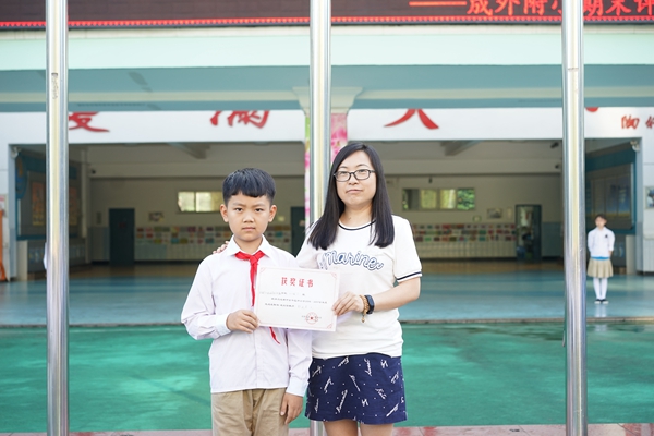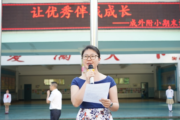 在2016——2017学年度中,我校的四年级五班,荣获成都市金牛区中学校先进班级称号,弥校长为他们颁奖。