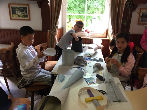 在清晨明媚的阳光中迎来了又一个美好的早晨。向各位道一声“早安!”今天我们要自己动手添置一个新装备——男孩子的头盔,女孩子的公主帽。小朋友们剪的剪,贴的贴,按照自己想象的样子精心制作装备。