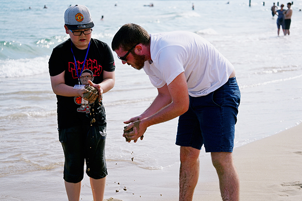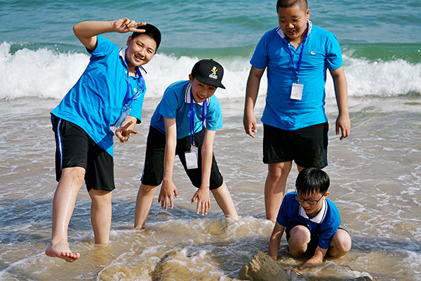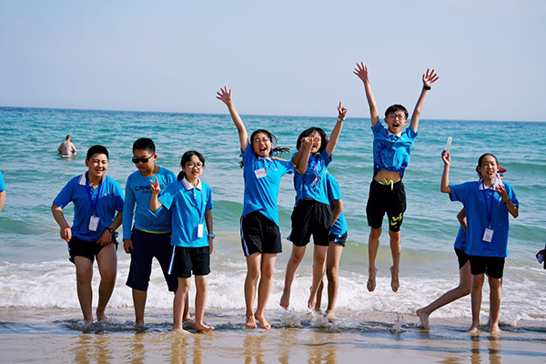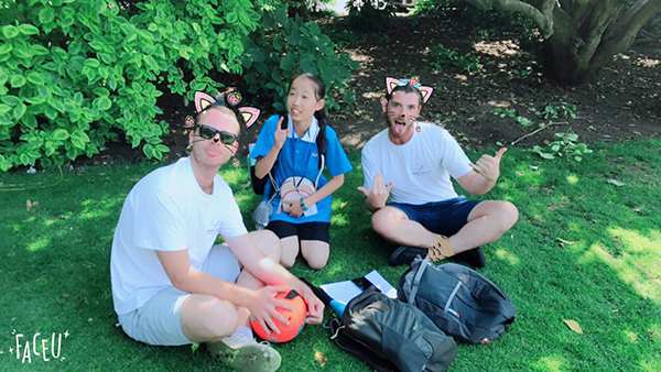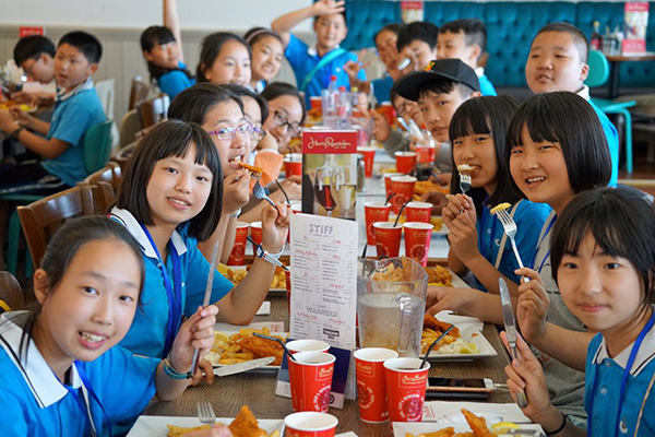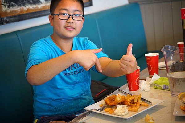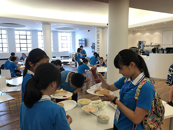 当地时间7月6日上午,孩子们先分享对前一天的生活学习的感受,然后学习制作三明治的方法!午餐吃典型的学生餐热狗!下午的户外拓展活动分为两个时段:第一时段在海滨公园分小组寻找目标,完成指定自拍任务;第二时段在海边踏浪、堆沙堡……之后,他们在海滨餐厅享用英国经典食物:炸银鳕鱼配薯条。回宿舍路上,有孩儿感慨:咋个时间过得这么快哦!