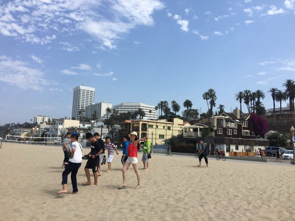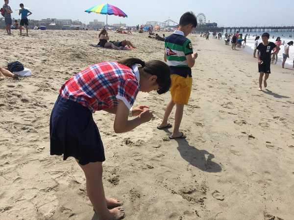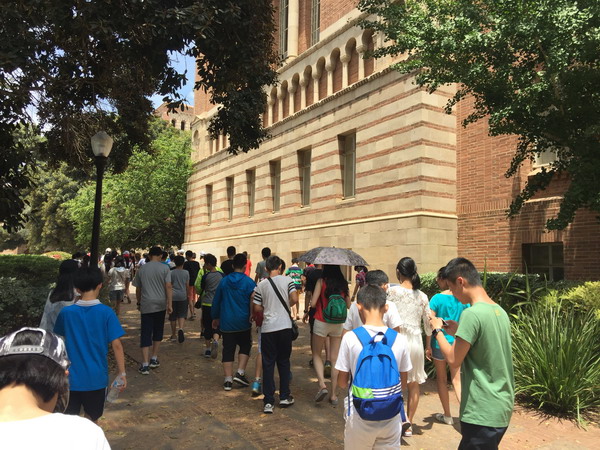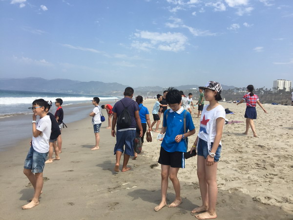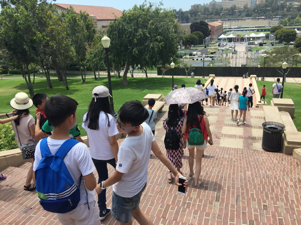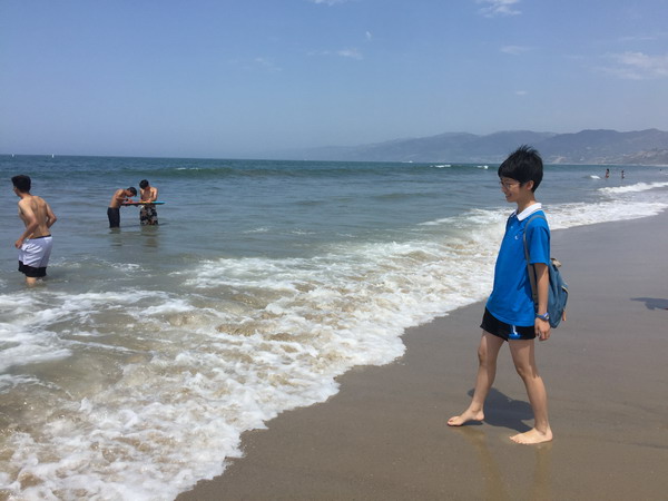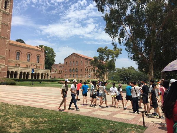 美国当地时间7月9日上午,我们登上了天文台,远眺美丽的洛杉矶、漫步海滩,赤脚走在舒服的沙滩上,感受迎面而来的海风,在岸边踩水,阵阵清凉。中午,我们已步入加州大学洛杉矶分校,感受名校风采,古老的教学楼,绿荫下休息的学子,心中涌起一股莫名的激动,我们坐着大巴车远远离去。回望加州大学洛杉矶分校,强烈的动力冲撞着我的心灵。眼前的时间所剩无几。美国,一个多元素文化的国家,在这里我们领略了它先进的科技、美丽的景观、有趣的人文……期待明天更有趣的旅行!