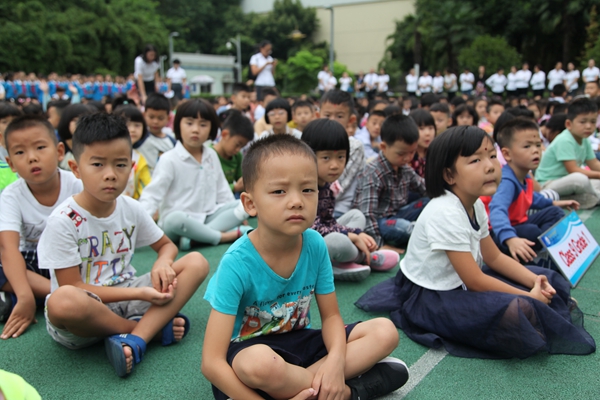 一年级的小朋友们也认真的在听大哥哥大姐姐的介绍