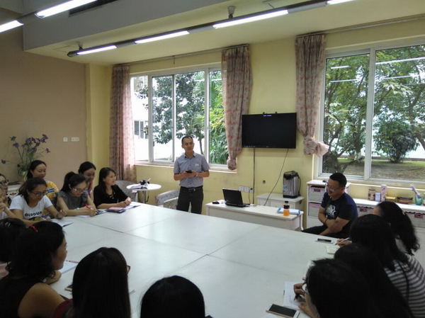 On September twelfth afternoon,a meeting of this semester was held by the English group. On the meeting, the research group leader Mr Chen informed the new semester teaching research plan and the formulation of the English city. The vice principal Mr Zeng put forward valuable suggestions, and he emphasized that we should encourage the children's learning interest and passion, awake their desire and confidence for the knowledge, enspire the children to show themselves bravely.