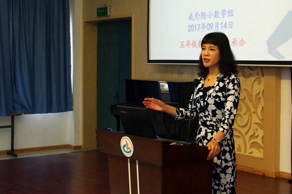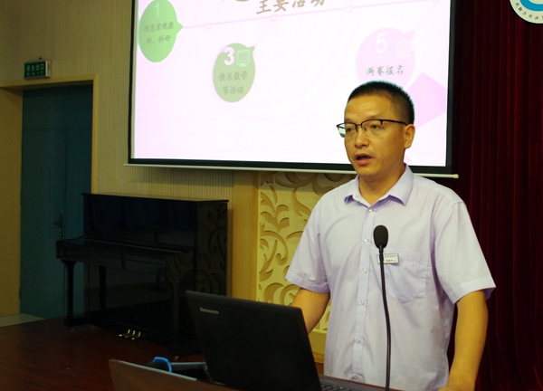 校长助理何军老师对暑期备课情况,四、六年级调考情况作了详细通报,并对成实外联考,备课组建设做出了具体要求。