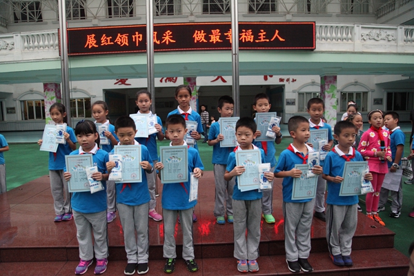 9月18日,我校中海校区举行第十四周集体朝会。每到一个新的学年,我校都要在五年级的同学中选择新的一届大队委,从而为大队委队伍注入新的血液。今天,五年级的部分大队委候选人进行演讲,为自己拉票并接受同学们的审查。随后,我们为在美术和体育方面取得进步的同学颁奖。