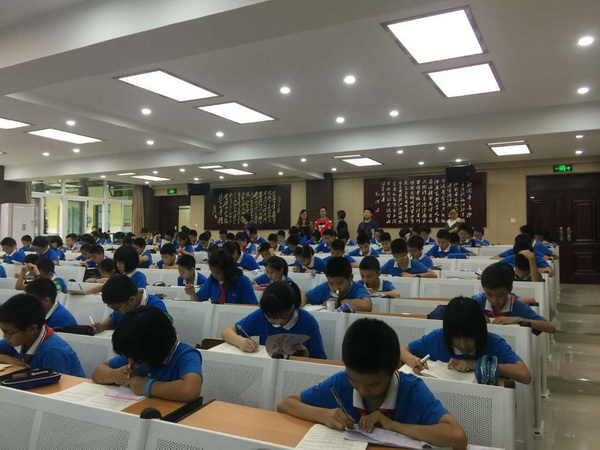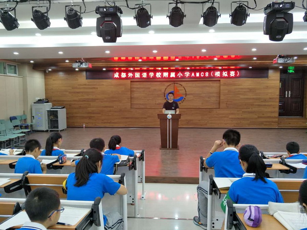 9月21日,我校六年级近200名学生,首次参加了AMC8(美国数学竞赛---8年级组:美国数学协会面向全球的权威比赛)模拟竞赛。成外附小作为四川省内第一所高端品牌小学试点,学生初次接触全英文版数学试卷。参照去年初二学生竞赛情况,本次模拟参赛学生中40%左右的学生达到获奖水平。充分展示了我校学生在英语阅读和数学能力等方面的良好水平。何助理带领六年级数学组和英语组全体老师,拉开了为孩子们搭建国际平台的序幕。