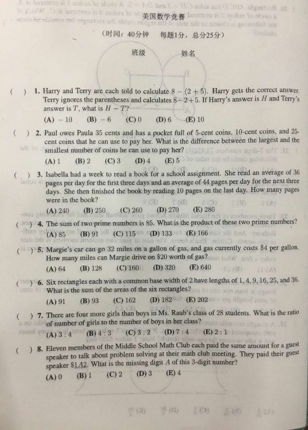 AMC8 样卷