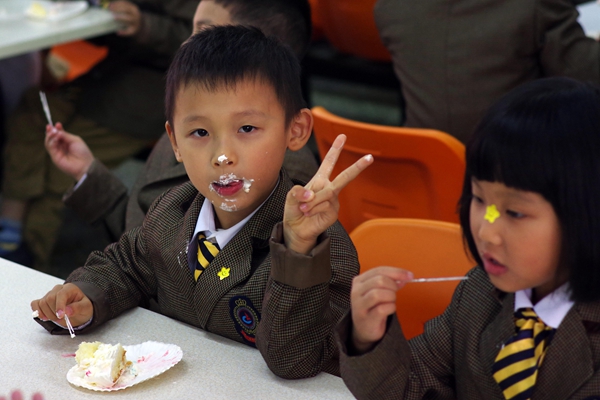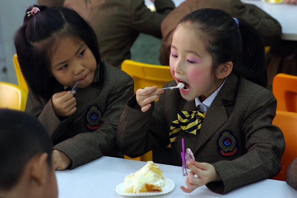 分享美味的蛋糕!摆个pose,卖个萌。嘿嘿,甜到心里去啦!