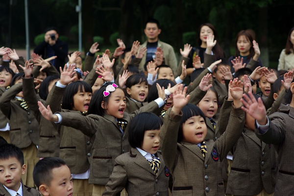 All teachers and students read together, "When the difficulties come, please lift your left hand, left hand represents the direction, it will not bow to the difficulties ..."