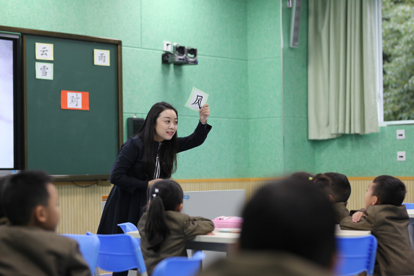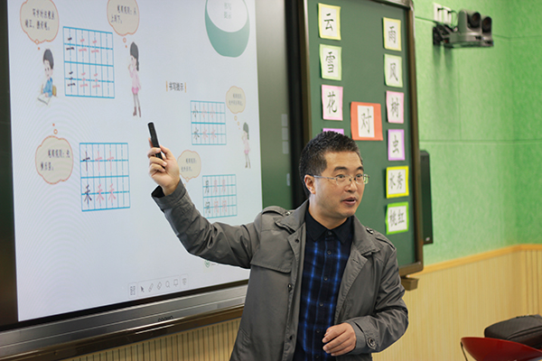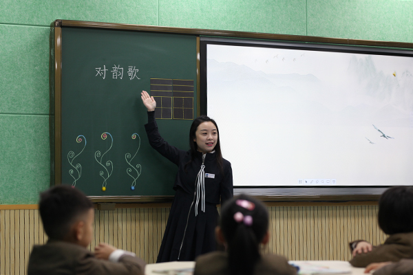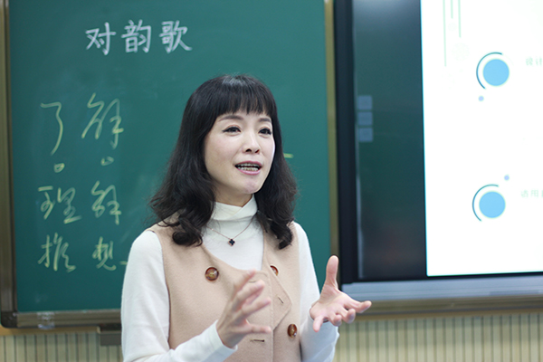 教研活动第一环节是栾珏老师课堂教学展示。栾珏老师执教一节识字课《对韵歌》,将识字教学与朗读指导相结合,将文化韵味和诗情画意融入其中。