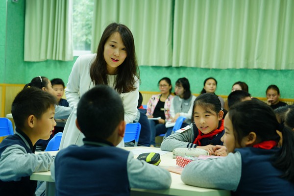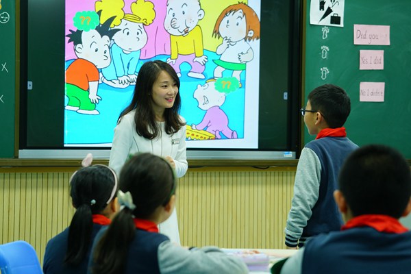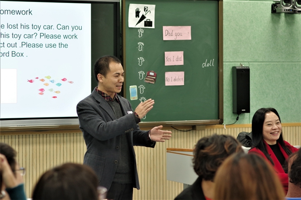 On the morning of November 9th, Principal Assistant Xie Jianying with her team from Chengdu Foreign Languages School were invited to our school to carry out a teaching research with all teachers of English group. Mrs Sunke gave a lesson of “Did you take Amy’s doll ?” in fourth grade from "new standard English". Mrs Sun's class designed closely for students' psychological with asking questiongs constantly to encourage their interests and cultivate their abilities in English. She helped students to understand the text contents presented clearly on the blackboard by the mind map. And she organized the group discussion and the text situation performance to enrich the student activities which could help to experience the wisdom of solidify cooperation. Students took part in the class actively.
