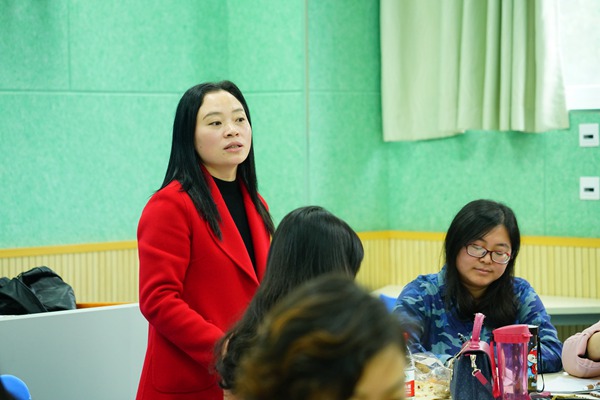 常态课观摩结束后,两校英语教师展开了深入的讨论交流。孙可老师阐述了自己这节课的教学设计和构思。接着,成外初中部的英语教研组长左懿老师、初二英语备课组长舒晓曲老师进行了现场评课。她们对孙老师精心的教学设计、活跃的课堂氛围、学生良好的学习状态给予了充分肯定,也针对如何提高课堂时效提出了很多建设性的意见。