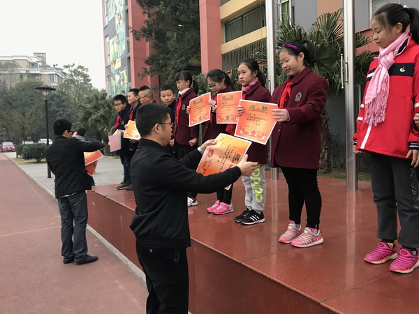 11月27日,我校中海校区举行第十四周集体朝会。会上,德育处朱珊珊主任对本学期的上半期同学们的日常行为表现进行小结,并提出新的要求!随后,我们为在科学组组织的拖拉机拼装比赛中获奖的班级颁奖!