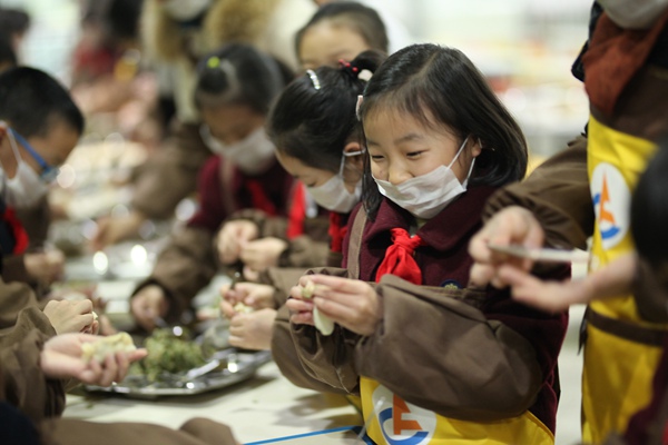 Principal Ms Mei made dumplings with children.