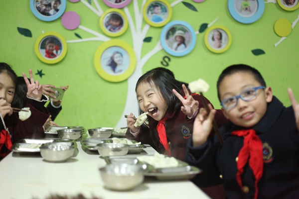孩子们津津有味的吃着自己包的饺子,有的说是幸福的味道,有的说是温暖的味道,还有的说这是“开心的饺子”……