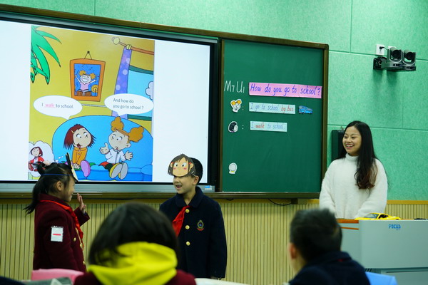二年级备课组黄丽老师执教《How Do You Go To School》:教态亲切,课堂活跃。