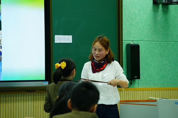 Ms Chen Ping presented an excellent course Do You Use Chopsticks In The UK? Period one: Ms Chen Ping's class is lively and lively, the image is interesting, add her own humorous and humorous class style, the students and the teachers who attend the lecture are happy in it.