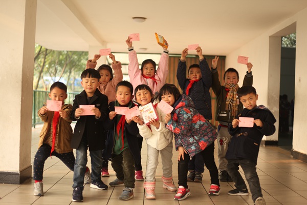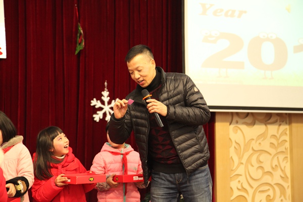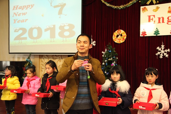 学校领导为孩子们抽奖