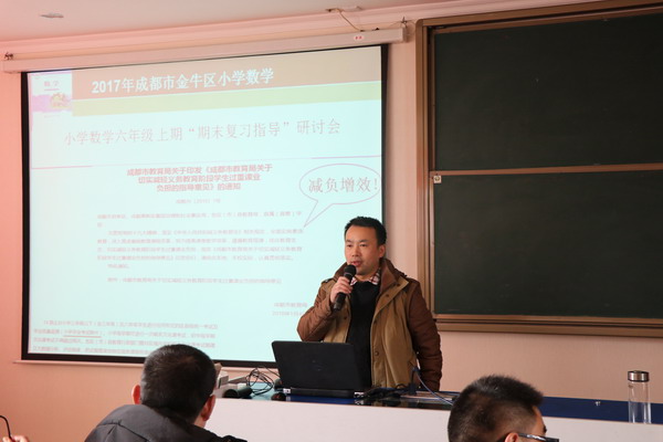 On January 8th, Jinniu District Primary School Mathematics "Final Review Guidance" seminar was held in Bai Guolin Primary School, all graduating classes mathematics teachers attended it.2017 graduating class mathematics group of our school was invited to present exchange speech about teaching experience.