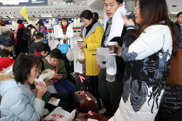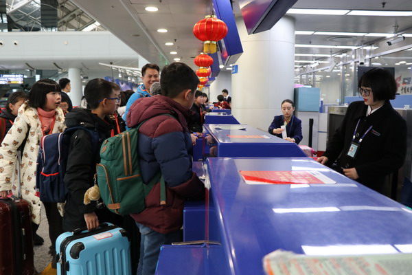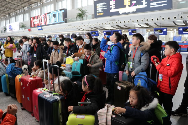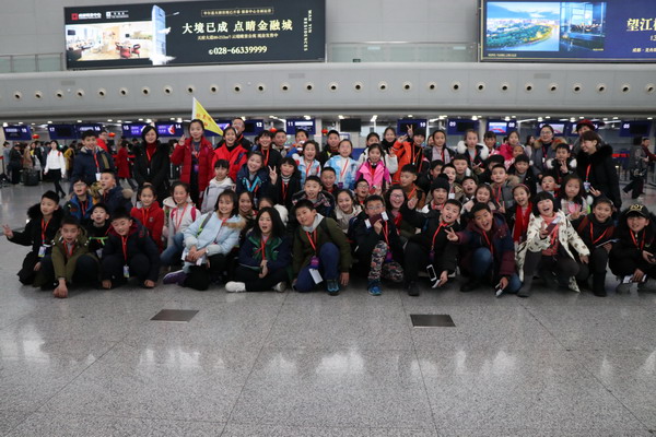 同学们在家长的护送下,准时到达双流国际机场