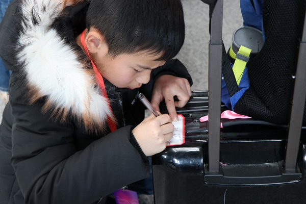认真倾听带队老师讲解旅途中的注意事项