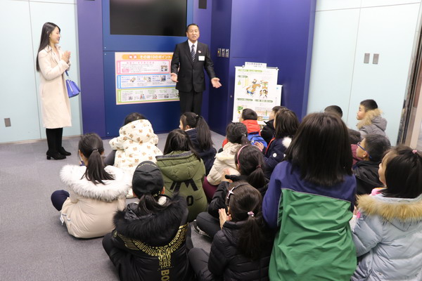 防灾公园的工作人员向同学们讲解地震的相关知识
