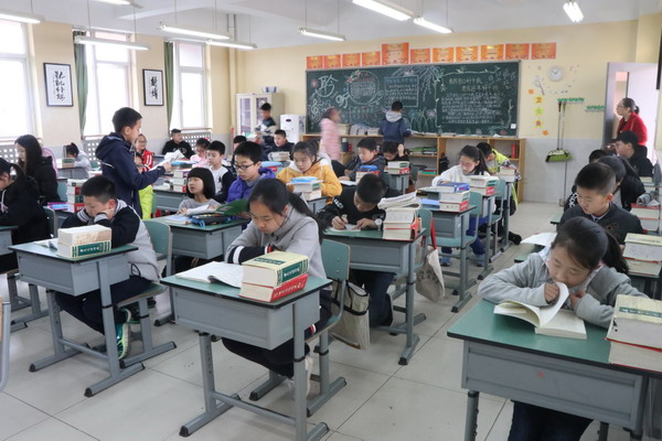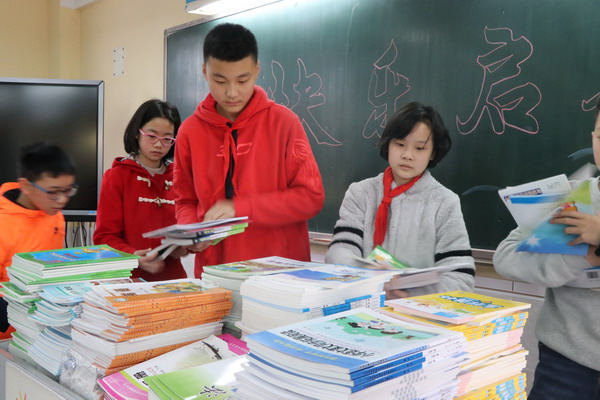 It was fun to get new textbooks, train in line and share the fun of the holidays with teachers and friends happily.